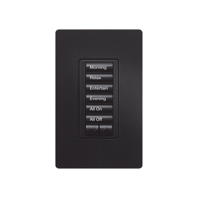 Teclado seetouch 6 botones, 2 botones subir/bajar, programe escenas diferentes en cada botón, color negro.